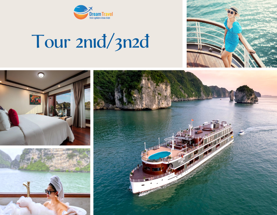 Tour thăm vịnh 2 ngày 1 đêm, tour này rất phổ biến với các khách nước ngoài, và mình nghĩ, rất phù hợp với nhóm khách Việt Nam, nếu các bạn không có nhiều thời gian để đi du lịch xa, nhưng vẫn muốn “đưa nhau đi trốn”, nghỉ ngơi, thư giãn sau những ngày làm việc căng thẳng. Các bạn hoàn toàn có thể xuất phát ngày thứ 7, trở về ngày chủ nhật. Một lưu ý nhỏ là thời gian thực tế ở trên tàu là khoảng 24 giờ nhé. Trong tour này, ngoài thời gian nghỉ ngơi ăn uống trên tàu, bạn còn tham gia các hoạt động ngoài trời (chèo kayak, thăm hang, thăm làng chài, lên đảo…).