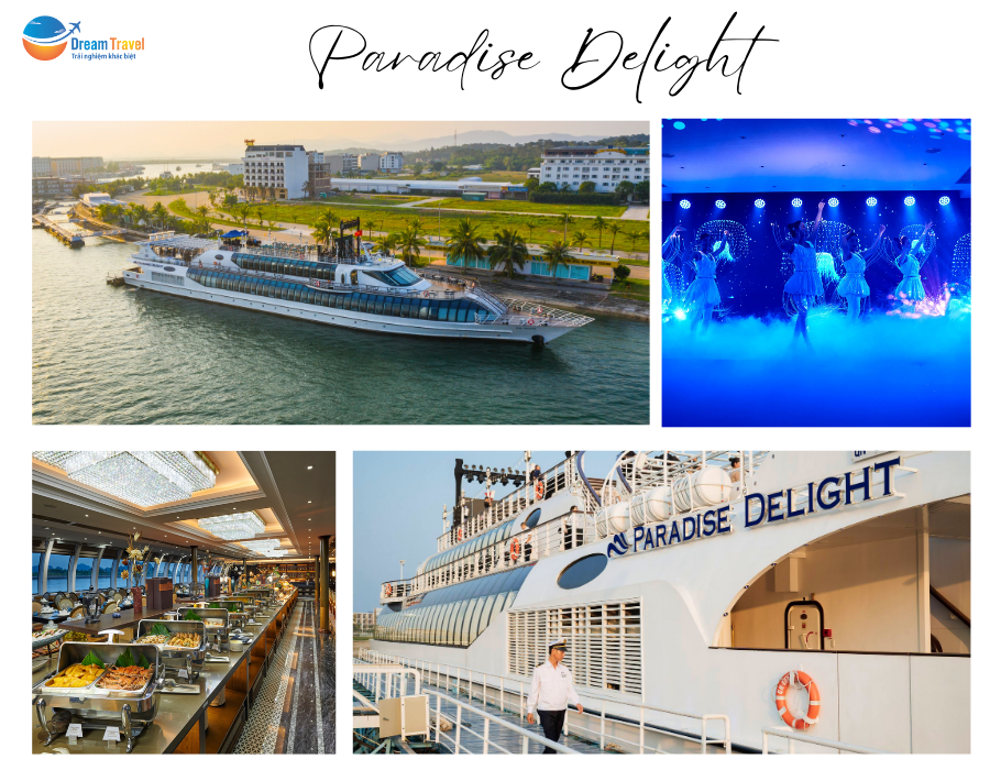 Du thuyền Paradise Delight là du thuyền nhà hàng 5 sao sang trọng hàng đầu tại Hạ Long, du thuyền phục vụ 2 lịch trình: buổi trưa từ 10h và buổi tối từ 18h. Thực đơn du thuyền Paradise Delight là sự kết hợp xuất sắc của hải sản Hạ Long và các món ăn Âu – Á nổi tiếng.