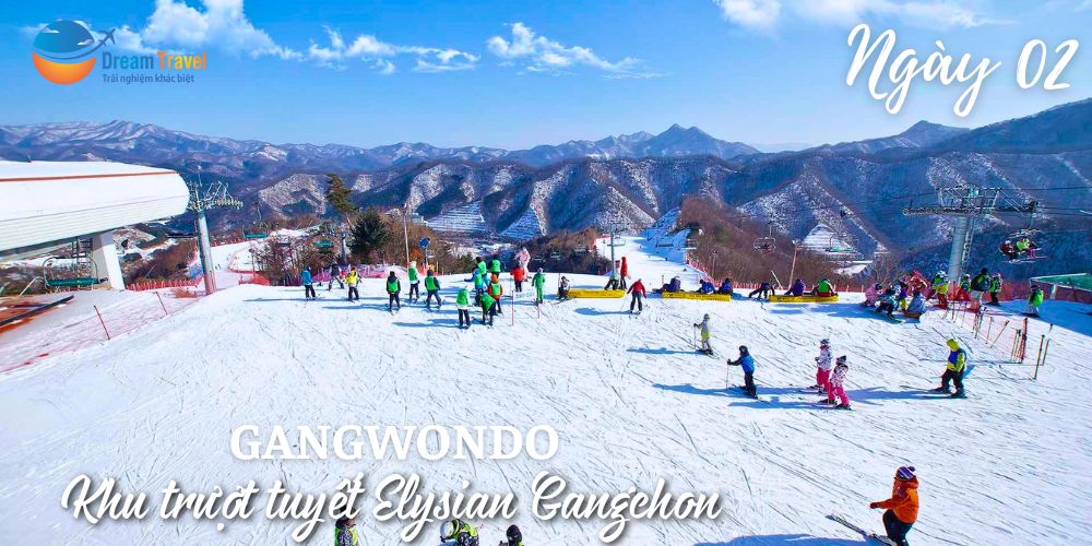 Khu trượt tuyết ELYSIAN GANGCHON – hệ thống khu giải trí phức hợp nằm trong khung cảnh hoành tráng của vùng núi TỈNH GANGWONDO, tận hưởng cảm giác thú vị trước thiên nhiên bao phủ tuyết trắng, lưu lại các bức ảnh kỷ niệm mùa tuyết rơi và trải nghiệm môn thể thao trượt tuyết.