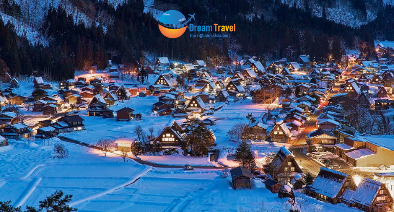 Làng cổ Shirakawa-go – Di sản thế giới từ năm 1995, nổi bật với kiến trúc gasshō-zukuri mái tranh độc đáo. Mùa đông tuyết phủ, ngôi làng đẹp như tranh vẽ và là cảm hứng cho bộ truyện Doraemon nổi tiếng